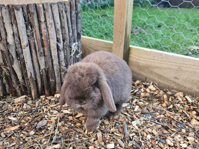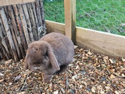 Peanut is an outdoor rabbit and needs lots of space and stimulation due to his energy and inquisitive nature.
