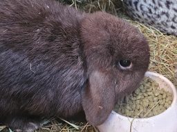 Truffles can be kept as an indoor or outdoor rabbit, he is a very happy and bouncy boy, he has a mischievous side and likes to tip his water bowl over! he has his favourite companion "girlfriend" which is a slipper!, he enjoys strokes and being sat with, he doesn't like cuddles or being picked up.
